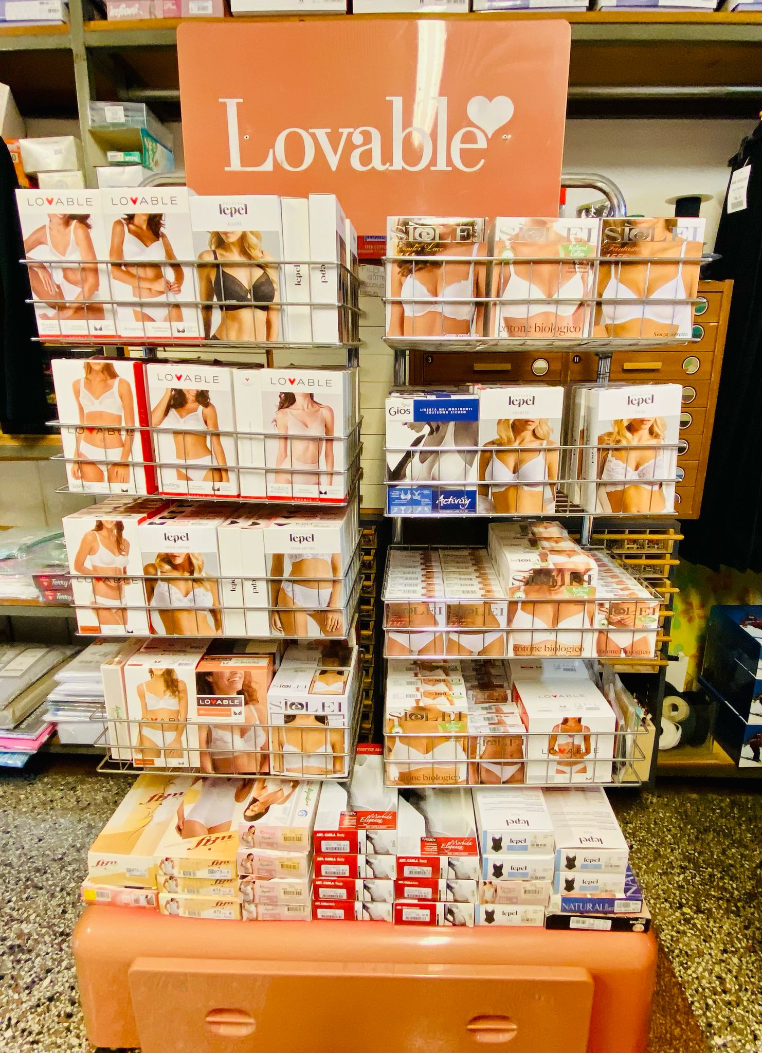 Offriamo una vasta gamma di articoli di bassa merceria: fili da cucire, aghi, bottoni, elastici, oltre a un’infinita varietà di corde e nastri, pensati per stimolare la creatività. Inoltre, il nostro assortimento comprende abbigliamento intimo Lovable e Sloggi per uomo e donna, dagli slip alle calze, fino ai pigiami, per unire comfort e stile.